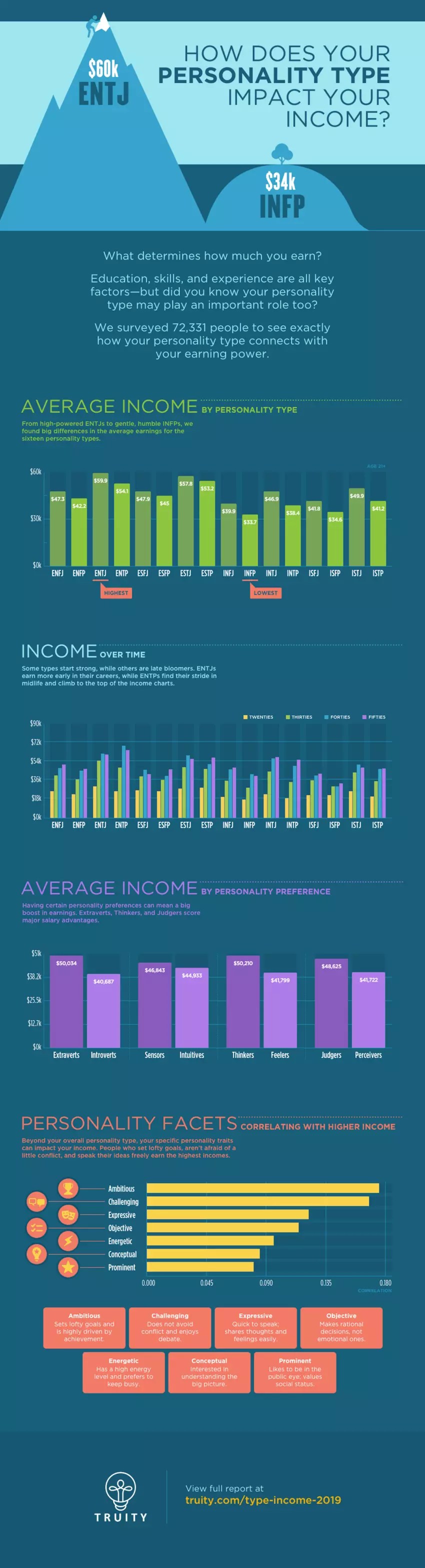 Today’s infographic comes to us from Truity, and it outlines the potential relationship between personality type and income.
