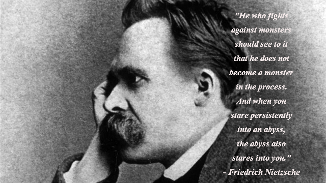 “He who fights against monsters should see to it that he does not become a monster in the process. And when you stare persistently into an abyss, the abyss also stares into you.”