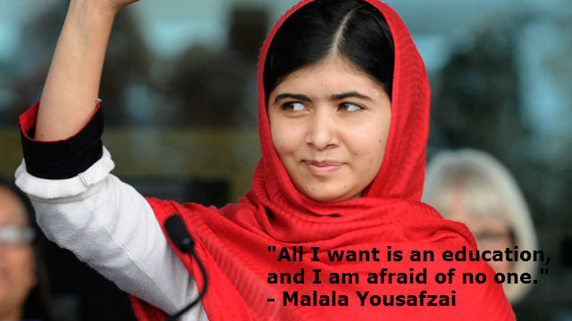 “All I want is an education, and I am afraid of no one.” – Malala Yousafzai