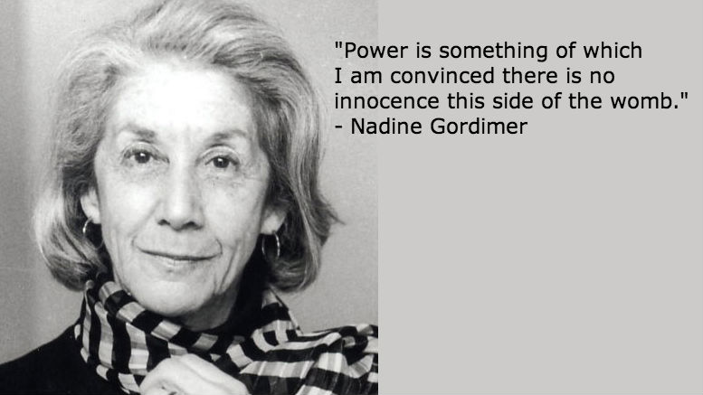 “Power is something of which I am convinced there is no innocence this side of the womb.”- Nadine Gordimer (born on this date in 1923)