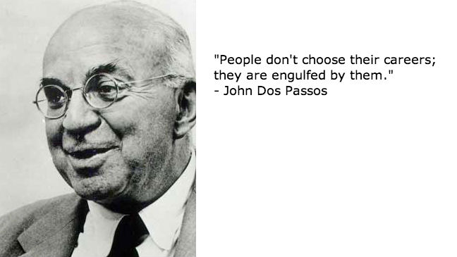 “People don’t choose their careers; they are engulfed by them.”- John Dos Passos (born on this date in 1896)