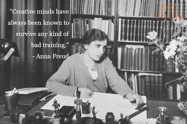 Big Think Home Open search Open main menu Search What are you curious about? Popular SearchesCritical thinkingPhilosophyEmotional IntelligenceFree Will Latest Videos Latest Articles Topics PhilosophyEthicsReligionFlourishingKnowledgePhilosophy of SciencePhilosophy of ArtLanguagePolitical TheoryIdentityMeaning & PurposeScience & TechPhysicsBiologyAerospaceHealthGeologyComputingEngineeringEnergyBiotechnologyAstronomyMind & BehaviorPsychologyNeuroscienceDecision-MakingMental HealthConsciousnessEmotional IntelligencePersonalityRelationshipsParentingBusinessEntrepreneurshipLeadershipFinanceMarketingInnovationStrategyManagementArtificial IntelligenceStartupsEconomicsHistory & SocietyHistoryLiteratureArtMusicFilmProgressCultureSociologyPolicyGeopolitics Latest Videos Latest Videos See All Columns Classes Featured Classes Browse More NewslettersMonthly IssuesEventsBig Think+ LearningCreative StudioAdvertise with UsAboutCareers View our Twitter (X) feed View our Youtube channel View our Instagram feed View our Substack feed View our Spotify feed Sign In Membership My account My ClassesMy AccountMy ListBT+ for my BusinessEarly ReleasesSign Out Membership Latest Topics Back PhilosophyEthicsReligionFlourishingKnowledgePhilosophy of SciencePhilosophy of ArtLanguagePolitical TheoryIdentityMeaning & PurposeScience & TechPhysicsBiologyAerospaceHealthGeologyComputingEngineeringEnergyBiotechnologyAstronomyMind & BehaviorPsychologyNeuroscienceDecision-MakingMental HealthConsciousnessEmotional IntelligencePersonalityRelationshipsParentingBusinessEntrepreneurshipLeadershipFinanceMarketingInnovationStrategyManagementArtificial IntelligenceStartupsEconomicsHistory & SocietyHistoryLiteratureArtMusicFilmProgressCultureSociologyPolicyGeopolitics Videos Back Latest Videos Columns Back Columns Classes Back Featured Classes My Account Back My ClassesMy AccountMy ListBT+ for my BusinessEarly ReleasesSign Out Sign In Membership More Back NewslettersMonthly IssuesEventsBig Think+ LearningCreative StudioAdvertise with UsAboutCareers View our Twitter (X) feed View our Youtube channel View our Instagram feed View our Substack feed View our Spotify feed View our Twitter (X) feed View our Youtube channel View our Instagram feed View our Substack feed View our Spotify feed Search What are you curious about? Popular SearchesCritical thinkingPhilosophyEmotional IntelligenceFree Will Latest Videos Latest Articles Anna Freud on Creative Minds "Creative minds have always been known to survive any kind of bad training." - Anna Freud by bigthinkeditor July 2, 2014 “Creative minds have always been known to survive any kind of bad training.” – Anna Freud