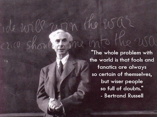 “The whole problem with the world is that fools and fanatics are always so certain of themselves, but wiser people so full of doubts.” – Bertrand Russell