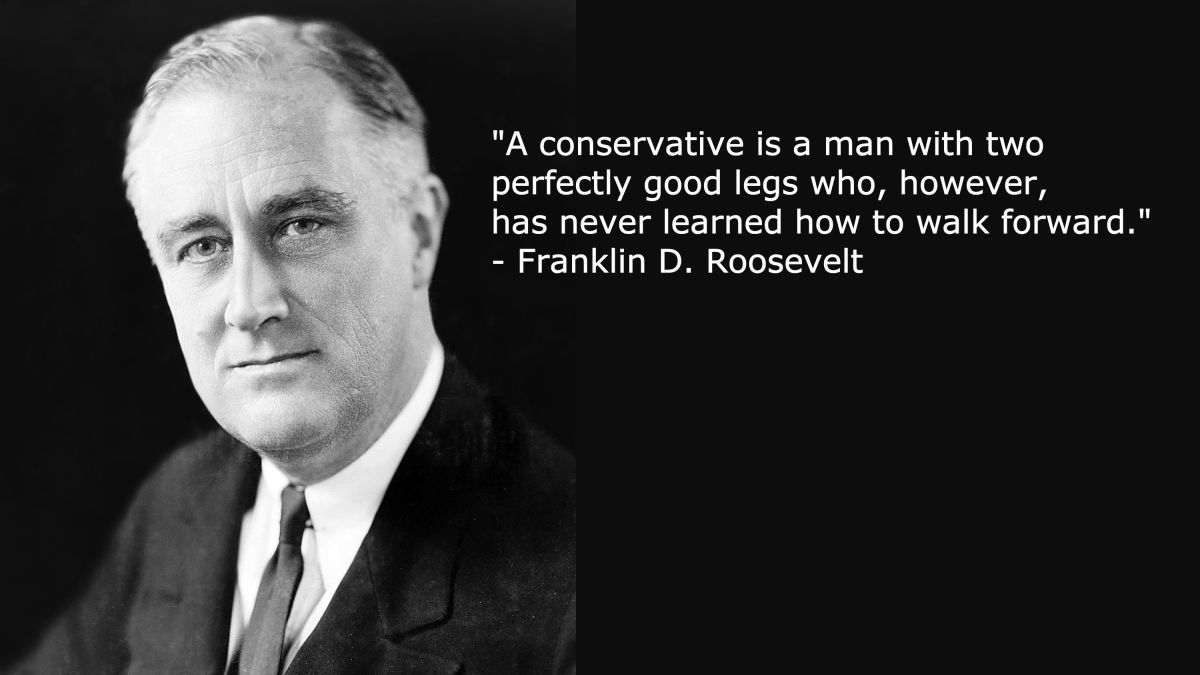 "A conservative is a man with two perfectly good legs who, however, has never learned how to walk forward."
