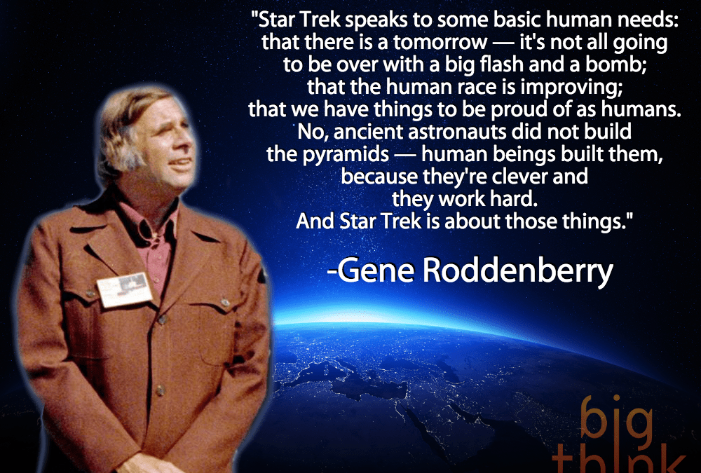 “Star Trek speaks to some basic human needs: that there is a tomorrow — it’s not all going to be over with a big flash and a bomb; that the human race is improving; that we have things to be proud of as humans. No, ancient astronauts did not build the pyramids — human beings built them, because they’re clever and they work hard. And Star Trek is about those things.”