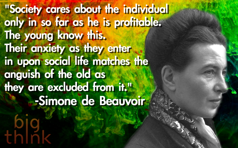 Simone de Beauvoir (1908-1986) was a French author and existentialist philosopher. Her The Second Sex is one of the foundational texts of modern feminism and philosophy (as well as the source of the quote below). She was the partner of fellow philosopher Jean-Paul Sartre for nearly 50 years. They remain together today, at least in a manner of speaking.