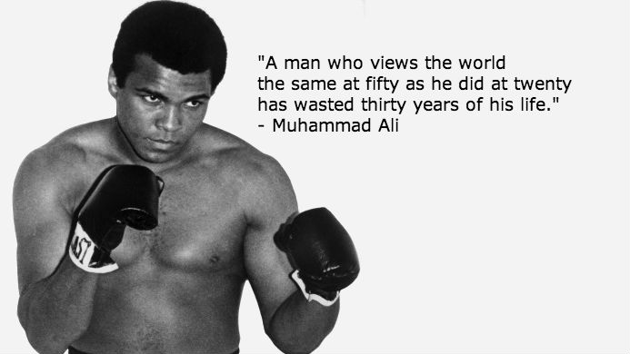 "A man who views the world the same at fifty as he did at twenty has wasted thirty years of his life." - Muhammad Ali (born on this date in 1942)