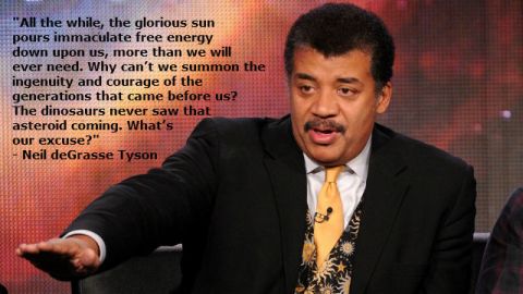 “All the while, the glorious sun pours immaculate free energy down upon us, more than we will ever need. Why can’t we summon the ingenuity and courage of the generations that came before us? The dinosaurs never saw that asteroid coming. What’s our excuse?” – Neil deGrasse Tyson