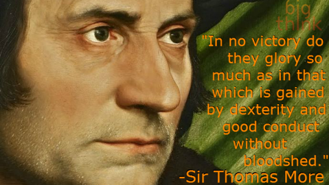 Thomas More’s utopian vision featured (among other things) an adherence to non-violence, a simple and fair legal code, and a reasonable monarch who governs with one finger placed upon the pulse of philosophy.