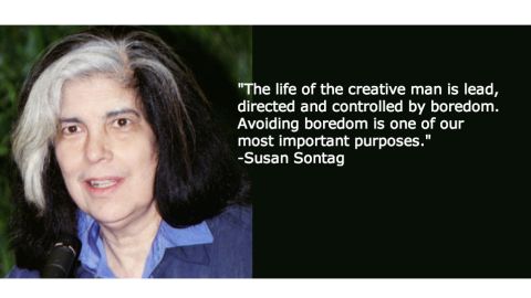 “The life of the creative man is lead, directed and controlled by boredom. Avoiding boredom is one of our most important purposes.” – Susan Sontag (born on this date in 1933)
